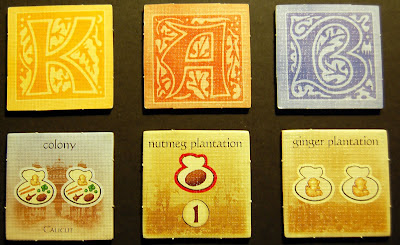 Las reglas de Goa, como en cualquier eurogame que se precie, se encuentran bien estructuradas, dando lugar a 2 partes del juego diferenciadas por las losetas que han de colocarse sobre el tablero de juego en cada una de las citadas fases: losetas A y losetas B. Cada una de estas partes dura 4 rondas y en cada ronda se dan 3 fases (nota: las reglas que a continuación explico, requieren más detalles de los que creo convenientes para que no nos aburramos leyéndolos, por lo que, si alguien quiere una mayor concreción, puede ponerse en contacto conmigo para ello, mientras estoy haciendo una tradumaquetación...).