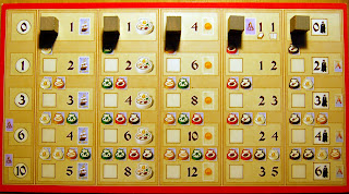 El jugador pagará los costes indicados entre las diferentes filas para hacer avanzar su cubo una posición hacia abajo en cada una de las diferentes columnas. Esto tiene como ventaja que cuando se realice la acción propiamente dicha de tal columna, se recibirá un beneficio mayor. Además, las filas indican a su izquierda un número que muestra la cantidad de puntos de victoria que el jugador recibirá por cada cubo que al final del juego se encuentre en dicho nivel.