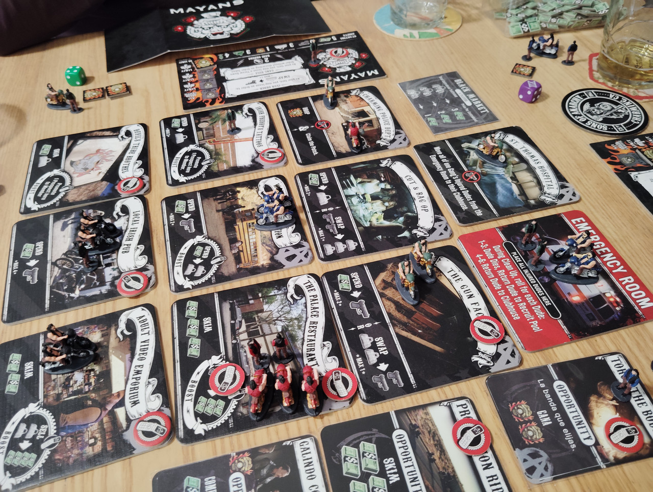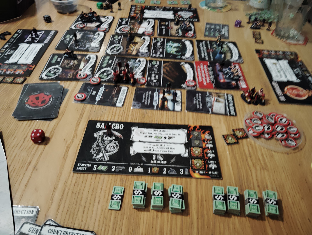 Ayer no, pero antes de ayer sí, un Sons of Anarchy a 4 jugadores, anteriormente sólo había jugado una partida y hacía más de un año. Jugamos una partida de alto octanaje, esto quiere decir que cada cada uno llevabamos una banda con unas características concretas. Al final conseguí la victoria con Samcro, conseguí unos combos muy buenos con ventas de armas y al final terminé con mucho dinero. La verdad es que el juego es está muy logrado es muy interesante y hay mucha interacción con lo cual aunque se alargó un poquito fue muy entretenido. Después ya con otro jugador un Mano a mano. Juego de fútbol en el que por supuesto hay bastante azar, porque tienes que tirar un dado para mover, pero también tiene su componente táctico y la verdad es que no está mal.