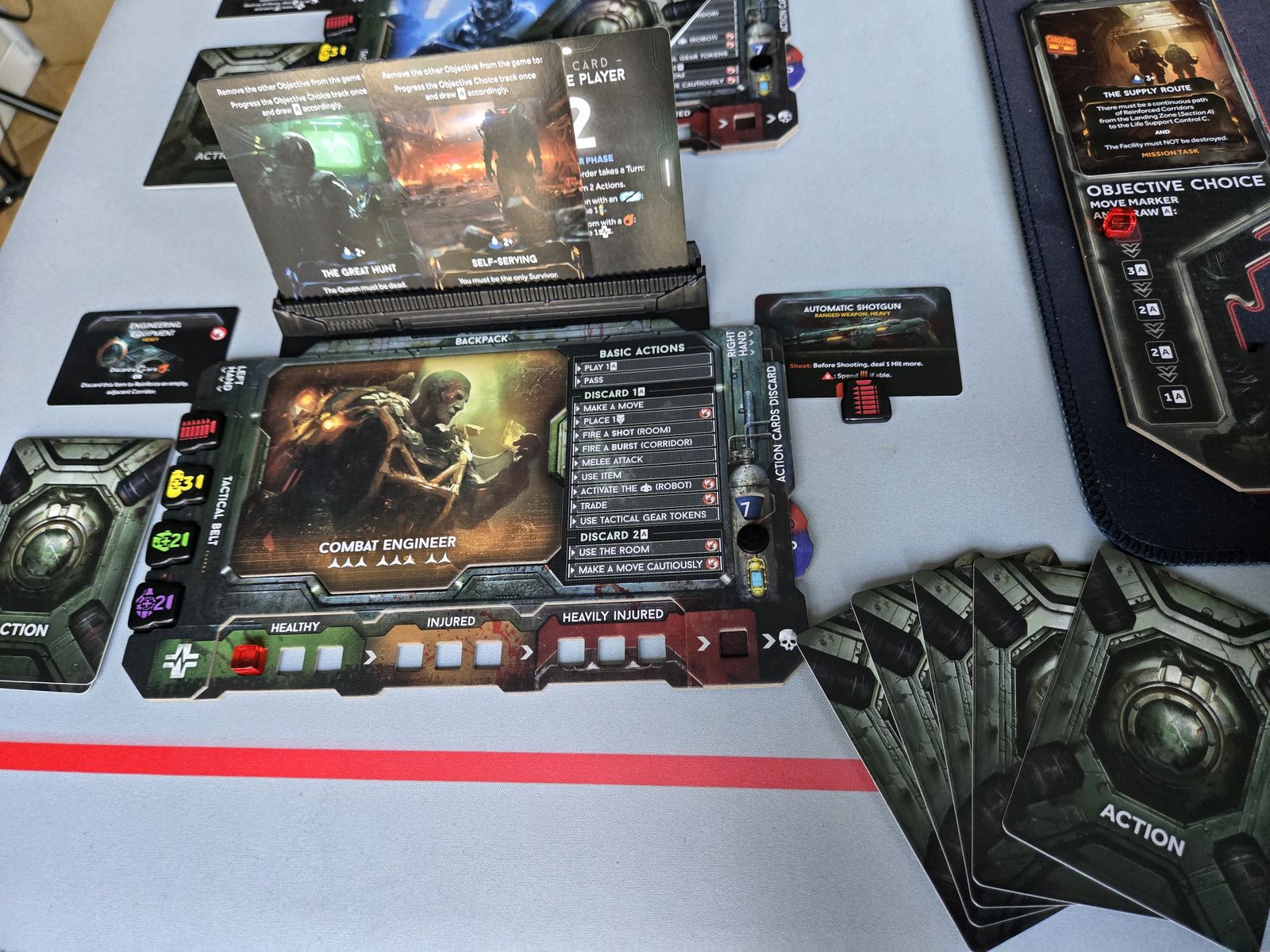 Estas primeras impresiones están basadas en dos partidas, por lo que se recomienda tomarlas con cautela. /pic7375234.jpg) Esta es la tercera versión del juego, tras Nemesis, inspirado en la película "Alien", y Nemesis Lockdown, inspirado en "Black pitch", y en este caso pretende representarse "Aliens" (Alien 2). Dado que existen abundantes reseñas sobre los anteriores vamos a centrarnos en los cambios, divididos en tres bloques: Mecánicas (cambios o añadidos de reglas), Dinámicas (en qué afectan esos cambios de reglas respecto a lo que hacen los jugadores) y "Experiencia-Estética" (las sensaciones que genera el juego) Mecánicas, cambios y añadidos de reglas:Uno de los cambios más vistosos es la cantidad de "intrusos" (enemigos) que aparecen en partida. Esto se deriva de otros dos cambios: los pasillos ahora son casillas en las que aparecen y se mueven los intrusos (los personajes no se detienen en ellos) y la mecánica de ruido hace que se generen con mayor facilidad. Además, cuando aparecen en pasillos lo hacen "en grupo", de 2 a 4, ya que los tokens de la "bolsa de intrusos" ahora no indican el número de cartas en mano necesarias para evitar el ataque sorpresa (siempre hay ataque sorpresa cuando aparecen en una sala y no lo hay cuando aparecen en pasillos) sino el número de intrusos que aparecen. Para hacer frente a tantos enemigos contamos con unas reglas de combate nuevas: las ráfagas con las que podemos eliminar a varios enemigos que se encuentren en los pasillos, y el hecho de que en los ataques "de cercanía", en la sala, no se gasta munición.:strip_icc()/pic7781359.jpg) Otro es la cantidad de recursos con los que cuentan los personajes. /pic8949114.jpg) Retaliation pretende representar Aliens donde una unidad especializada y armada con la mejor tecnología y armamento realiza una incursos a la colonia, y eso se nota en armas muy letales, munición abundante y formas de conseguir más munición o recursos para protegerse y curarse. Además de la mejora de los objetos en sí, los personajes cuentan con un "cinturón" en el que cargan con 4 objetos de apoyo (esos tokens que veis a la izquierda de la hoja de personaje), que permiten recargar munición o curar vida. Asociado a esto tenemos "búsquedas ilimitadas", ya que los objetos de las localizaciones no se agotan. Esto permite tener siempre fuentes de recursos para lo que necesitemos (la limitación viene dada por el mazo de cartas). Otro concepto que ayuda a los jugadores es el de "asegurar la zona". Ahora con una acción simple (o al avanzar cautelosamente, que ya no sirve para colocar el ruido donde quieres sino para esto) colocas un token de "asegurar" en la sala en la que te encuentras. Cada uno de esos tokens evita un ataque sorpresa. /pic7784304.jpg) También contamos con un robot de apoyo, que permite trasladar objetos de apoyo. Hay varios tipos de robot con distintas acciones (de curación, de ataque...) y el tipo concreto permanece oculto hasta que entras en contacto visual con él. Otra mecánica novedosa es la forma en la que se explora. En lugar de un tablero "fijo" tenemos un espacio virtual en el que apareceran losetas "al azar" mediante un mazo de cartas. Este nuevo formato genera "puntos muertos" o "caminos bloquedados". En realidad esta distribución no es completamente "abierta" sino que tiene cierta "estructura" dentro de lo aleatorio, pero genera sensación de incertidumbre. La Reina en Retaliation es mucho más letal y mucho más resistente. Ahota tiene un contador de daños y cada vez que fuese a "morir" se eliminan cartas de un mini-mazo (creo que con un total de unas 12-15). Cuando se agotan todas es cuando realmente muere. Además, las instrucciones de la bolsa de intrusos se han modificado para que la reina tenga mucha más activación y mucho más protagonismo. Además, tenemos una mecánica de "oxígeno" en la que dependemos de nuestro suministro autónomo, que se agota progresivamente y que podemos recargar. En cada "nivel" de la colonia tenemos una localización que permite suministrar oxígeno a todo el nivel y no gastar el de nuestro suministro... pero hay que localizarlo y activarlo. A todo ello le tenemos que añadir las nuevas habilidades de los nuevos personajes, en lo que quizá lo más destacable es que se pueden dar órdenes entre ellos dependiendo del rango militar, los nuevos objetivos o los nuevos objetos. DinámicasAlgunas de las dinámicas que suponen cambios tienen que ver con la forma en la que nos enfrentamos a los enemigos. En los anteriores eran menos y más letales, en este te enfrentas a un "enjambre" lo que genera tendencia a agruparse, asegurar salas y replegarse en ellas... tiene un toque más "militar" con estrategias de "comando" más que de "guerrilla". El caracter "infinito" de la búsqueda de objetos elimina una fuente de conflicto que sí había en los anteriores, porque ahora no se agotan. El asunto de los rangos y quién puede dar órdenes a quién añade una dinámica de "dominancia y sumisión", de jerarquía, disciplina e insubordinación. La exploración añade un punto arbitrario y de incertidumbre y tensión sobre cómo aparecerán los pasillos y el riesgo de quedarse "aislado", que se suma a la mecánica del oxígeno que propicia tanto una gestión añadida como otra asunción de riesgos. SENSACIONES (Experiencia - estéticas)Mis conclusiones son aparentemente contradictorias: por una parte estamos ante el mismo juego y las mismas sensaciones, pero con un cambio de "escala". Tienes que cumplir unas misiones, debes tener cautela en cómo avanzar, debes apoyarte en el resto para poder avanzar y cumplir tanto la misiones como mini-objetivos (como activar el aire o apagar fuegos), debes esquivar enemigos y aniquilarlos dependiendo de la situación... en esencia, lo mismo. Sin embargo, si te dejas llevar por el juego, tienes una sensaciones temáticas e inmersivas distintas. Son más unidades, te genera la sensación de estar en otro tipo de conflict
