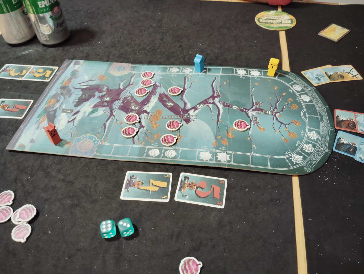 Ayer sí primero a tres jugadores jugamos un Grimm Forest, partida muy divertida y ya con cuatro un Tower Up, era la primera vez que lo jugaba y me ha gustado bastante es un euro sencillo que se juega en 40 minutos de construcción de edificios le trae un aire al Manhattan, y está muy bien. Y ya por último seis partidas seguidas a la Comunidad del anillo de cartas, conseguimos cinco aventuras... Y al final lo dejamos porque se tiene que ir el dueño del juego. Es muy activo con partidas de cinco minutos.