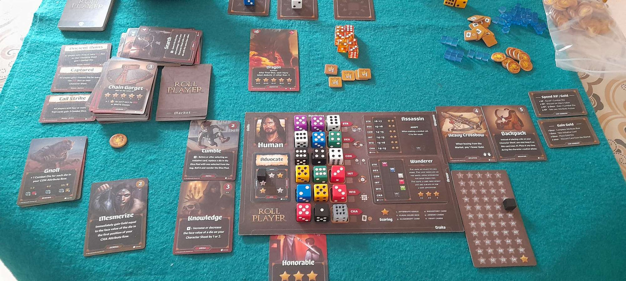 https://boardgamegeek.com/boardgameexpansion/213360/roll-player-monsters-and-minionsy la cosa mejoró. Esta expansión añade más personajes (no creo que hagan falta la verdad) y muchas más cartas de todo tipo (algunas muy chulas); pero lo más importante es la nueva acción de ir a “luchar” contra minions, en vez de comprar cartas, para que te den ciertos beneficios, y que al final de la partida tienes que enfrentarte a un monstruo y vencerle.