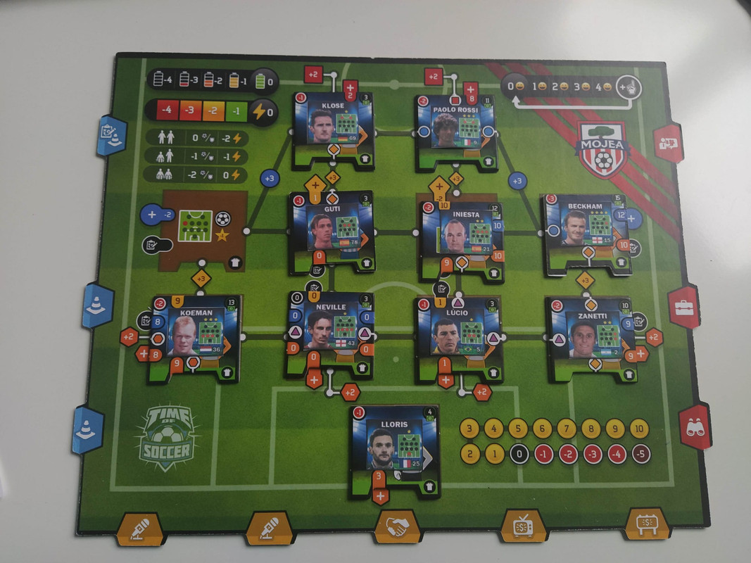Resucito este hilo tan molón para presentar esta nueva variante que estoy desarrollando con futbolistas clásicos realesCuando un jugador nuevo aparece en el mercado hay que fijarse en la columna donde se coloca la loseta y cruzarla con el nombre que figura en la siguiente tabla. Así de fácil:Por ejemplo, si el jugador "AMARILLO" aparece en la tercera columna del mercado, el jugador al que correspondería sería "ROMARIO". Busco su "mini-loseta" correspondiente y la coloco sobre la loseta original. Esto permite visualizar las estadísticas y valores de la zona exterior por si queréis seguir usando el Tos Calculator o algún otro programa para calcular los valores de ataque y defensa de forma rápidaEstoy empezando a maquetar los jugadores en recuadros de 2,5 x 2,2cm. Este es el ejemplo del final de una partida en solitario. Así quedaría el invento:Estos son los jugadores que tengo hechos hasta ahora. Los iré ampliando poco a poco (son 208 en total). Desconozco si hay alguna web que permita hacer losetas semi-profesionales con esto y a un precio no muy desorbitado. Si alguien sabe de alguna, os agradecería mucho que me lo hicierais saberEspero que os guste