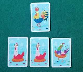 Siempre se colocan de izquierda a derecha y será la última gallina a la derecha la que recibirá los efectos de las cartas "malignas" y siempre tendrán que ser del mismo color que la primera que se coloque.