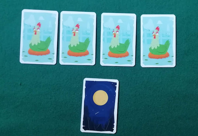 Fin del juegoEl juego acaba cuando un jugador consigue poner 4 ó 5 gallinas del mismo color en su gallinero, dependiendo del número de jugadores, o bien cuando alguien roba la carta de la luna llena.