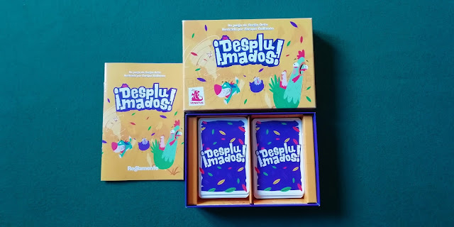 https://boardgamegeek.com/boardgame/297318/desplumadosCaja y componentesComo la mayoría de filler de cartas, se nos presenta en una caja pequeña donde apenas caben dos mazos de cartas y unas breves instrucciones.