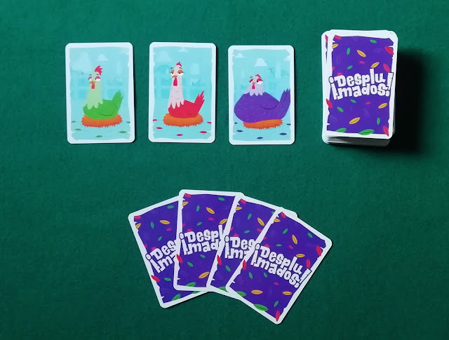 Desplumados es un divertido y fresco filler de cartas en el que tendremos que reunir 4 ó 5 gallinas del mismo color en nuestro gallinero (delante nuestro). Pero no será fácil ya que hay un montón de cartas que nos permitirán frustrar los planes de nuestros compañeros de juego y viceversa.