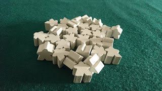 Los Meeples son los del Carcassonne, todos blancos y de maderita, como Dios manda.
