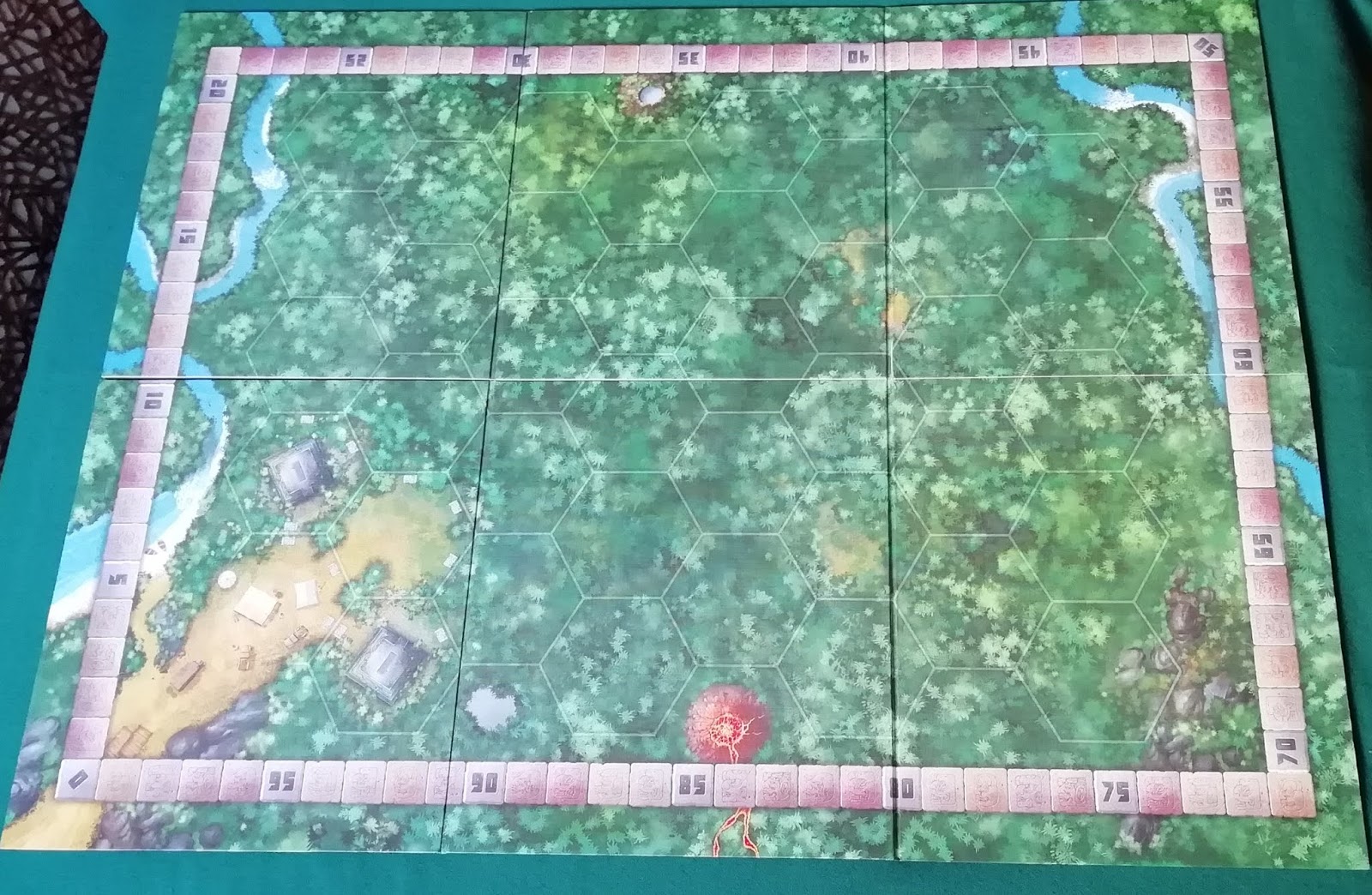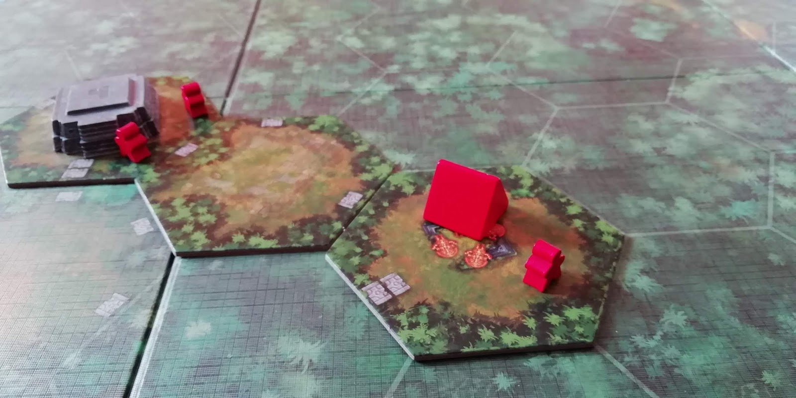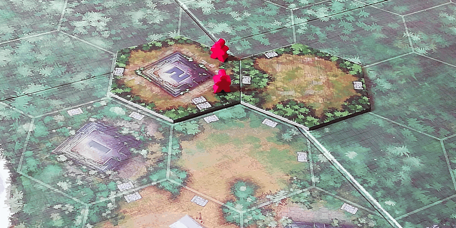 Una vez colocada la loseta, cada jugador tiene 10 puntos para utilizarlos con sus exploradores.