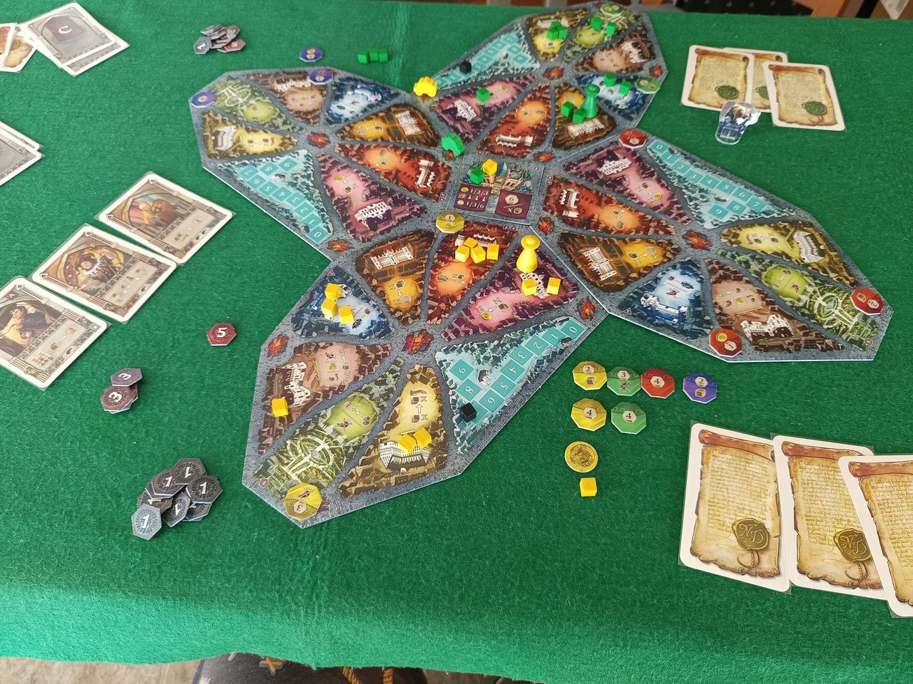 El juego en sí, nos ha gustado, aunque logicamente no podemos hacer una valoración aún, más alla de unas primerísimas impresiones. Es un juego que no es dificil de reglas, pero hay que roerlo. Igual con unas pocas partidas va como la seda, pero en esta primera, al "tran tran".
