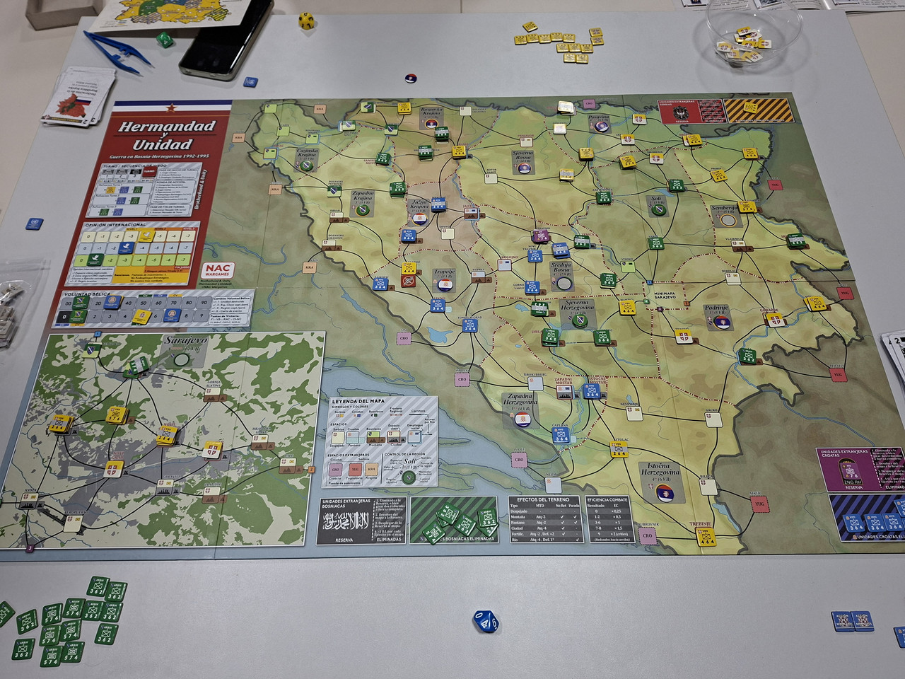 El sábado por la mañana cayó un Brotherhood & Unity, edición de Devir. La victoria fue para Croacia por sólo dos puntos sobre Serbia, que en este juego suele ser siempre el rival a batir. El bosnio quedó muy alejado de la victoria, pero también es cierto que fueron sus acciones en el noroeste lo que quitó unos importantes puntos al serbio.