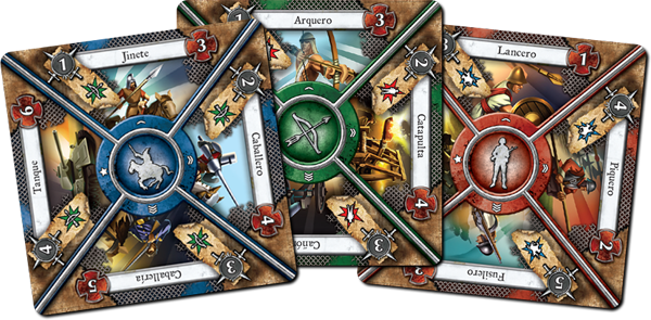 El combate es mediante cartas, con un sistema de piedra-papel-tijera entre las unidades de caballería-infantería-artillería que tiene más chicha de lo que parece e incluso un poco de