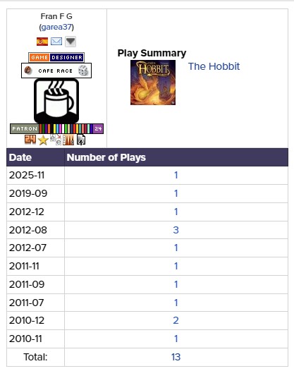 Quizá desde entonces había jugado alguna vez en el móvil, pero la última partida que tenía apuntada en BGG, jugada en un tablero de verdad, fue en enero de 2014.