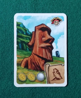 Las cartas, de un plástico excelente y resistente, se dividen en 3 montones, las de pirata que sirven para darle variación al juego, las de tesoro, para la puntuación final y las de historia, el más numeroso, con multitud de imágenes.