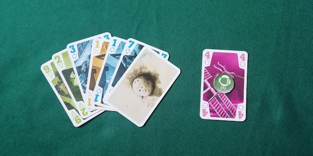 Con el fin de que no nos olvidemos de la carta que hemos dejado en la mesa, se nos sugiere coger una carta "de recordatorio" y ponerla en nuestra mano, lo cual nos recuerda que hemos dejado una carta en la mesa. No es ninguna tontería y os aseguro que es muy eficaz.
