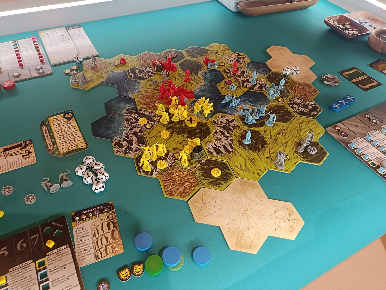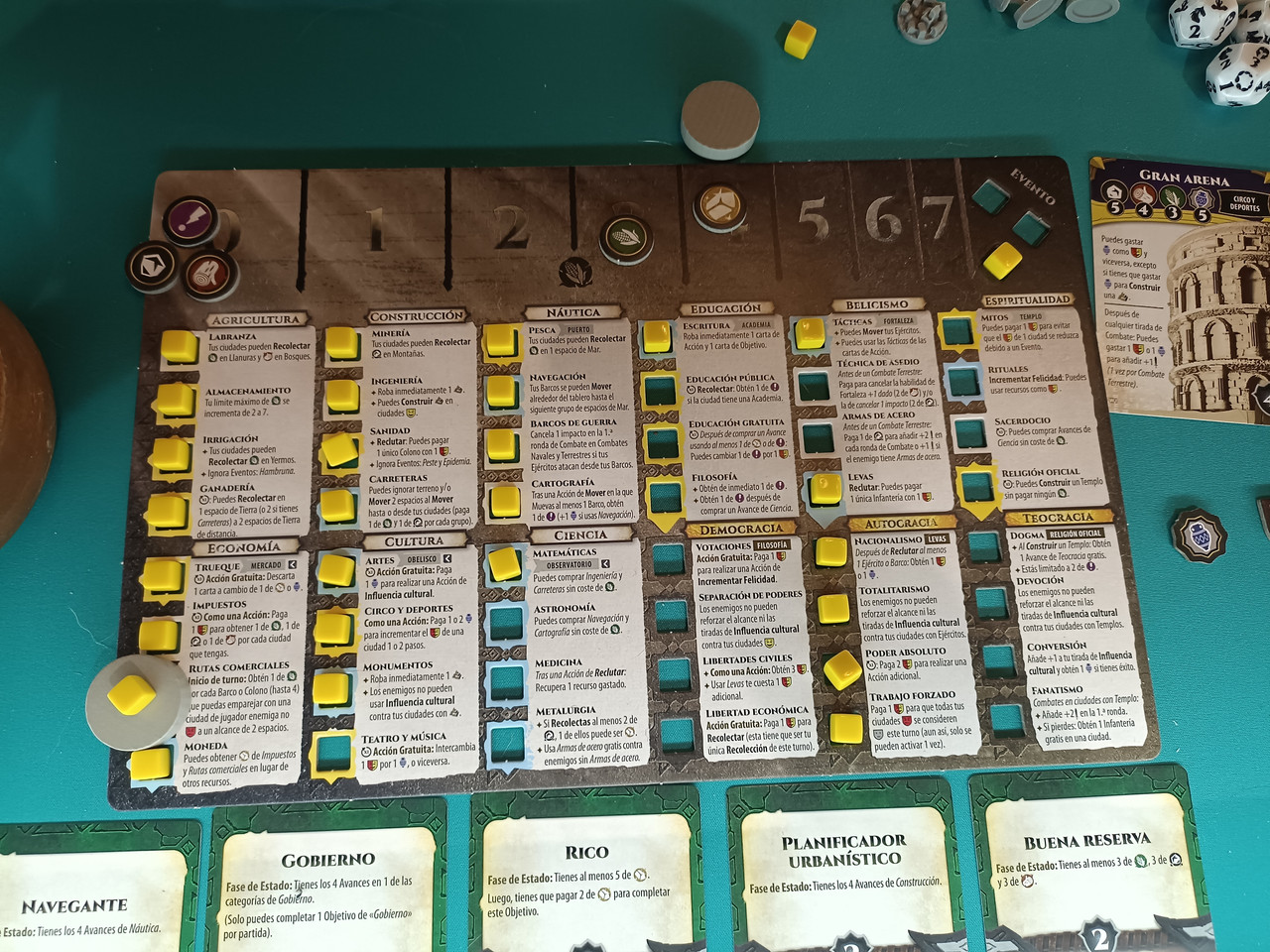 El clash Para dos era nuestra primera partida y usamos el básico. Me vinieron los objetivos un poco de cara y combaron bien. Monté un gobietno teocrata completo ,4 barcos y gané con tan solo un puerto, una fortaleza y una maravilla, todo a base de avances , o objetivos y una milagrosa carta que me salvó de los bárbaros al principio cambiando una cuudad barbara por una mía, que me dió la paz necesaria para montar el chiringuito y un ultimo turno donde mis muchachos arrasaron dos ciudades bárbaras