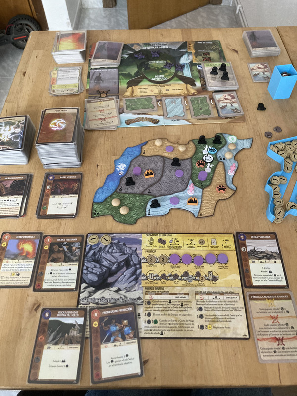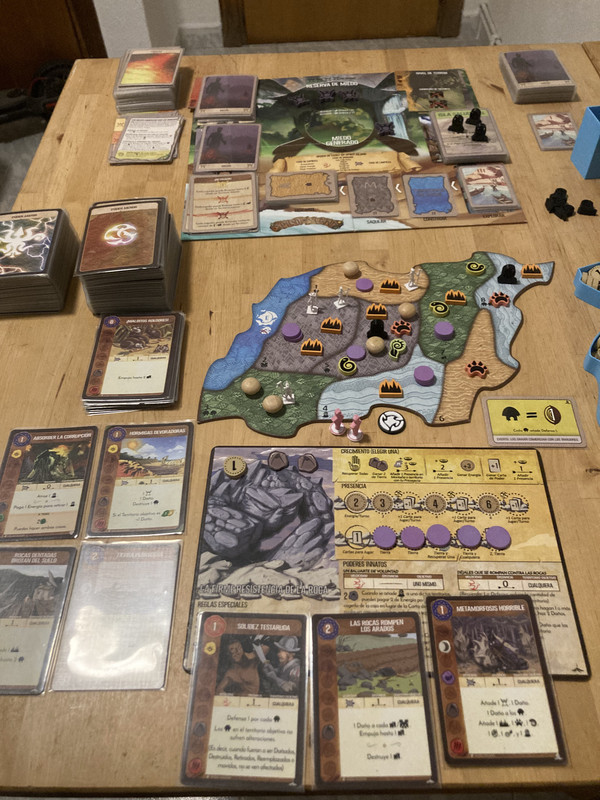 Llevo un par de días jugado a Spirit Island con "la firme resistencia de la roca", el un espíritu que me gusta mucho y seguramente practique para ampliar la guía. Siempre lo he jugado con la fila de abajo pero he leído mucha gente que la óptima es la superior