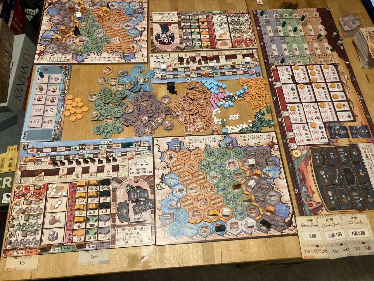 El miércoles jugué a Wildcatters a 4 con el amarillo, mi 4 partida frente a 3 novatos(...)Es un juegazo, digno de estar en mi selecta ludoteca. Esta todo tan ajustado que es muy complicado saber que te conviene hacer, por un lado están las acciones, que te dan puntos y pero también son la "moneda" del juego, debes mimarlas ya que te pueden obligar a pedir un préstamo que te puede dejar fuera, depende de los oponentes presionarte económicamente; por otro lado están las mayorías en los mercados, quieres meterlos en determinadas regiones para final de partida, lo que desemboca en una lucha feroz entre varios jugadores, y claro, todo esto con un caos por medio relativamente controlable pero que en determinadas situaciones se te puede ir de las manos, la pasta esta demasiado justa como para pagarte siempre los transportes, vas a necesitar usar de otros con el riesgo que te lleven donde no quieres, o que otro se aproveche de tus inversiones para sacar barriles extra que pueden fastidiarte los planes, interacción a tope, una maravilla.