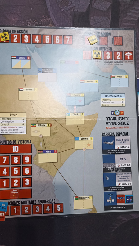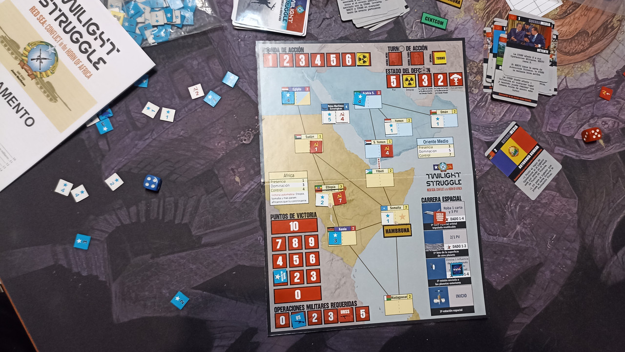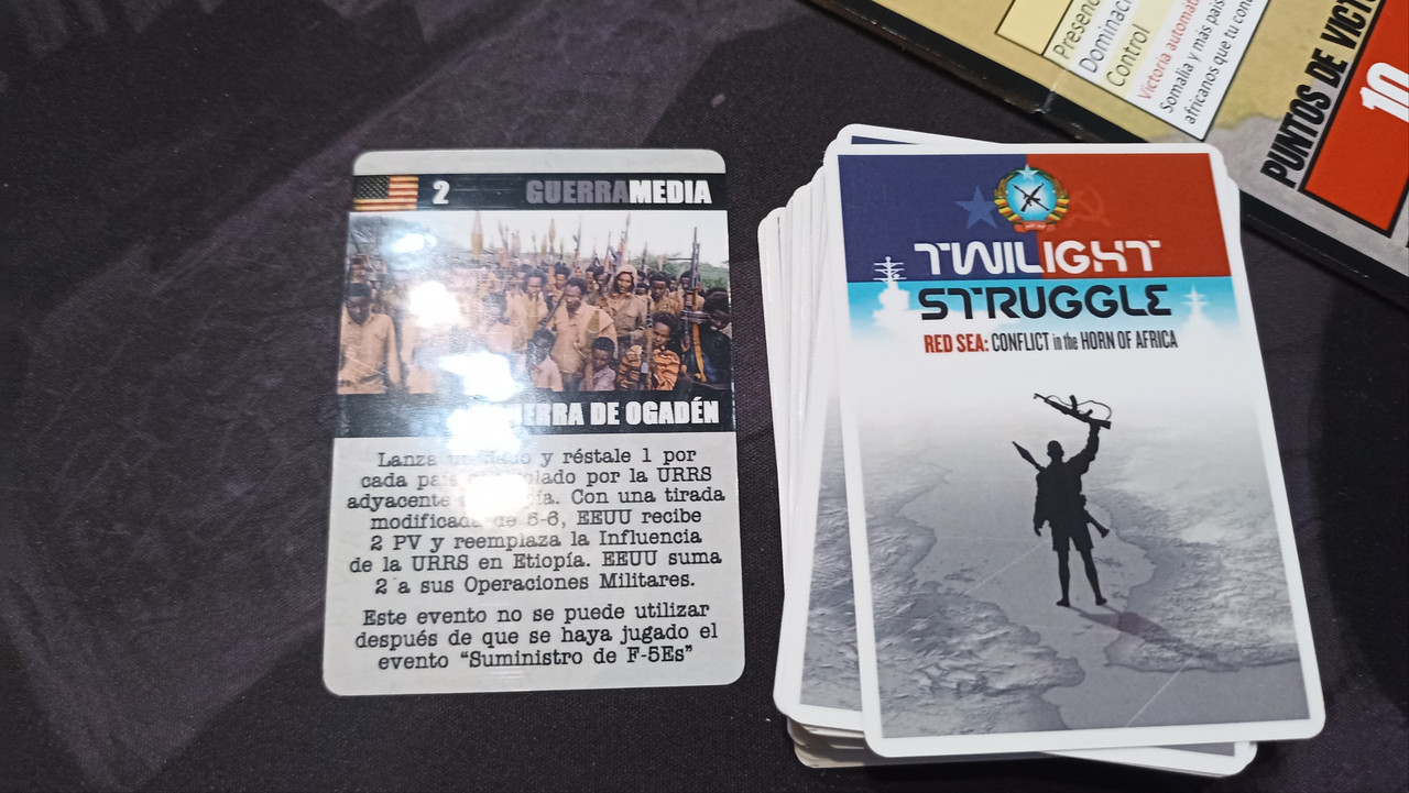Mirando por la BGG vi que estaban las reglas traducidas y un listado de todas las cartas también traducidas del Twilight Struggle Red Sea y como le tenía muchas ganas me animé a hacer un rediseño.