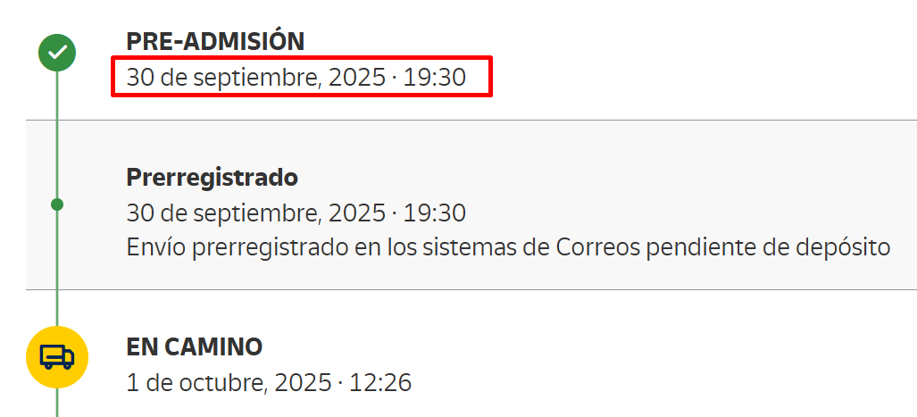 No tengo forma de saber qué contiene dicho paquete. La hora de pre-registro pendiente de envío a correos fue justamente ayer a las 19:30.