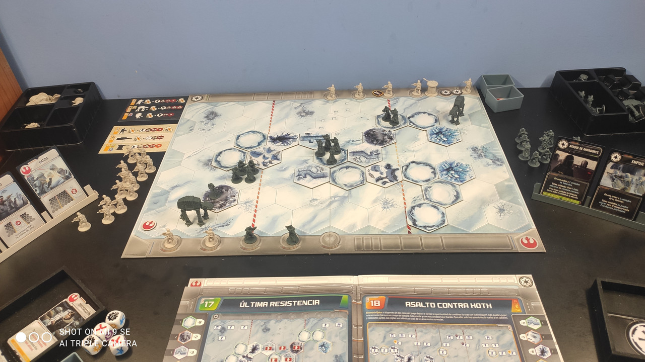 Probando StarWars la Batalla de Hoth, me ha parecido muy entretenido incluso por desdoble, ya me he pasado todos los escenarios salvo el épico. Creo que está un poco inclinado a favor del imperio, de 18 partidas jugadas 12 victorias para el imperio y yo encantado porque gane Darth Vader.