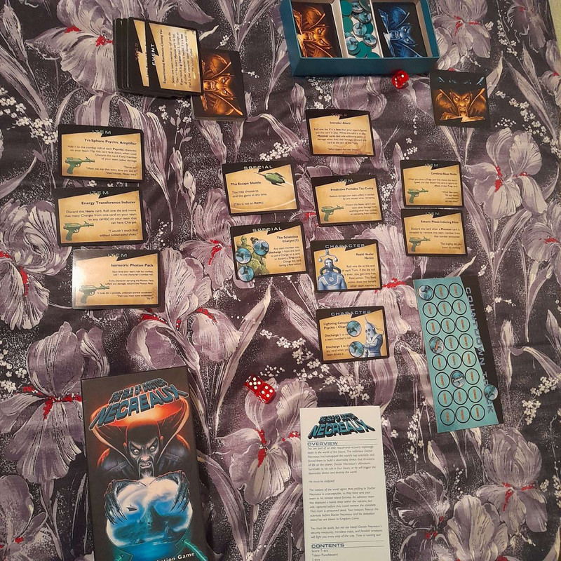Empiezo con the isle of doctor necreaux. En inglés. Creo que jamás se editó en castellano, ni nadie lo tradumaquetó (ni creo que ocurra nunca). Leyendo por la bgg, descubrí que la mayoría de la gente que tenía el juego es porque lo regalaron en una promoción, hace mil años, en algún lado. Es mi primera reseña regular/mala.