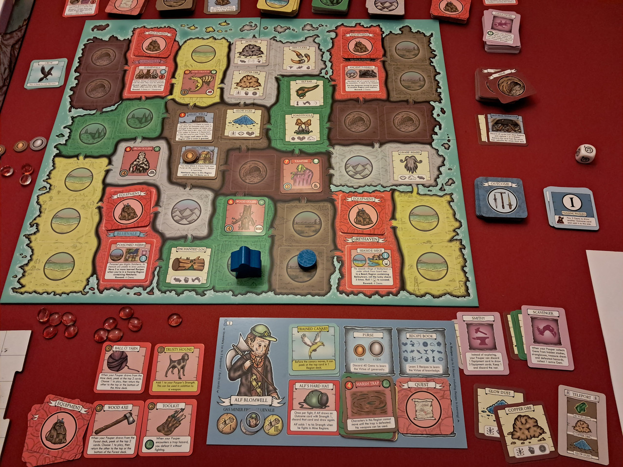 Toda esta gestión-presión con el gasto de turnos como moneda le sienta muy bien al juego y hace que planifiques bien y de pronto ya no sea ir moviendote por el mapa y sacando cartas. En ese aspecto, el tema de los dos peones hace que tengas más posibilidades de exploración, y esto va aumentando esto con los objetos que vas consiguiendo, ya que muchos se centran en que puedas robar más cartas en determinadas regiones para elegir asi mejor tus objetivos.