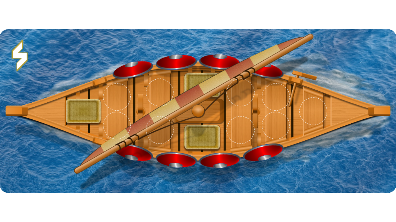 Presentación del tablero personal inicial, representa un barco nórdico de tipo Knarr, más adelante en la partida se podrá disponer de alguno de tipo Snekke, mejorándolo o construyendo otro.