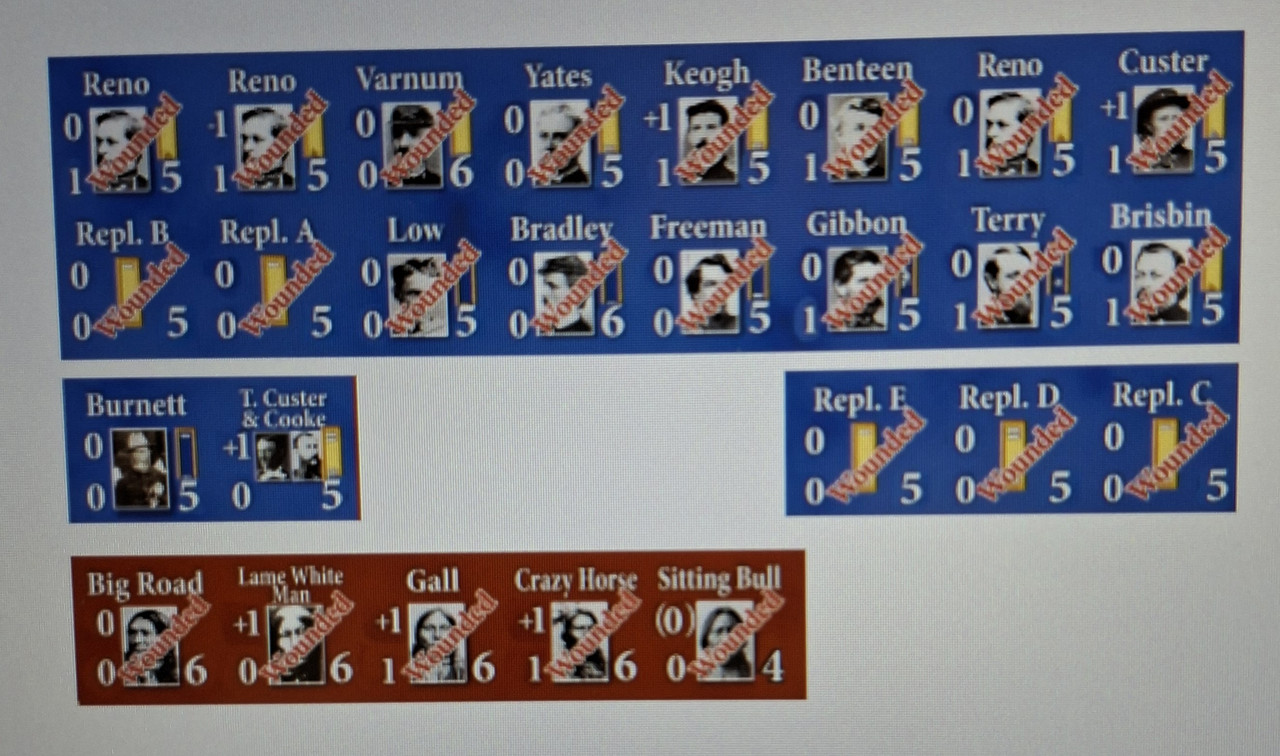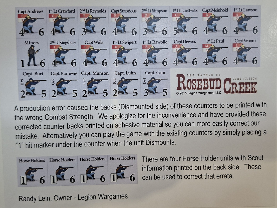 4º.- Que, para más inri, los reversos de los oficiales de Little Bighorn ya contenían errores en sus valores cuando estaban heridos, para lo que ya habían colgado en la web de Legion Wargames marcadores corregidos para que se imprimieran.