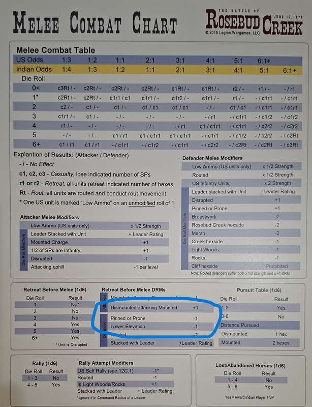 3º.- Que la tabla de combate cuerpo a cuerpo no ha sido corregida, y mantiene la misma errata que los otros dos juegos, The Battle of Adobe Walls y The Battle of Little Bighorn.