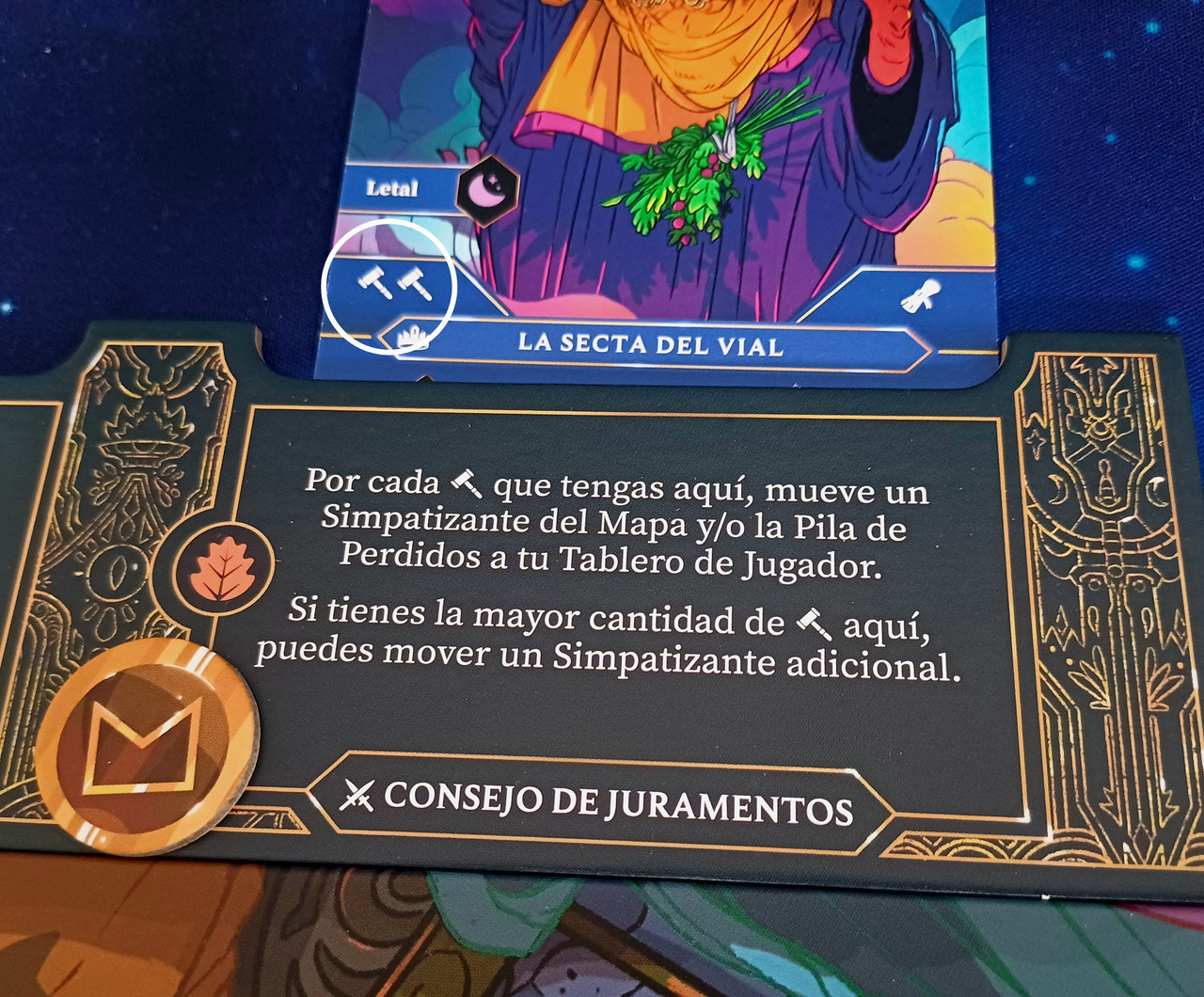 Con 2 votos en este Consejo recupero a 2 Simpatizantes, +1 extra por tener más votos que el Simulacro que sólo tiene 1 (la ficha de abajo)