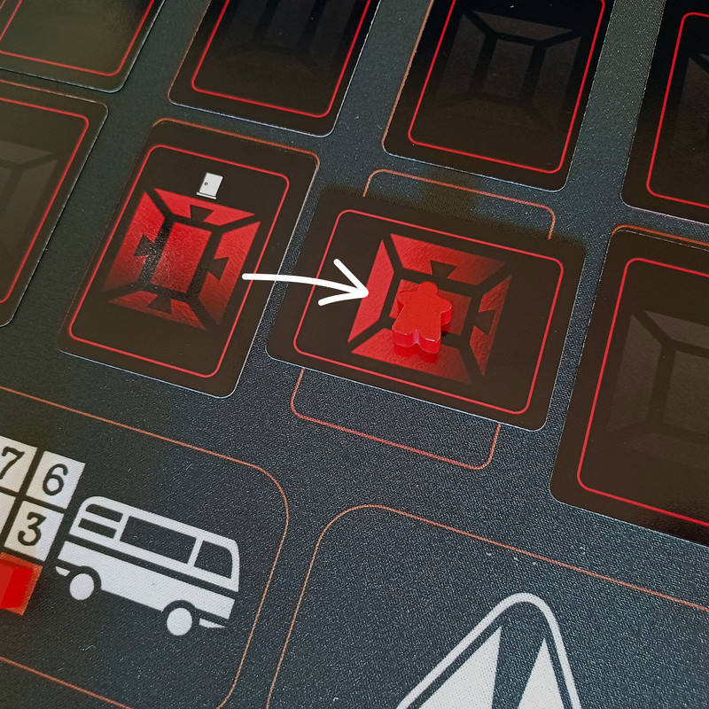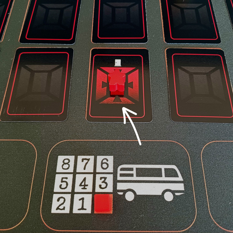 Inició de partida. Empiezas (meeple rojo) en la furgoneta, fuera de la casa